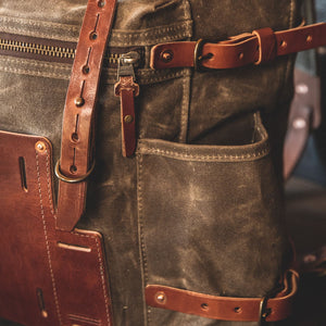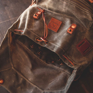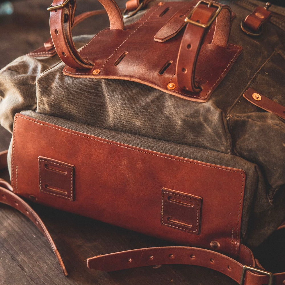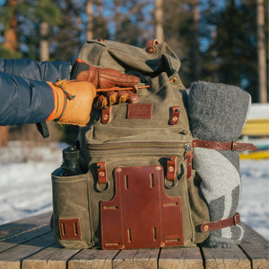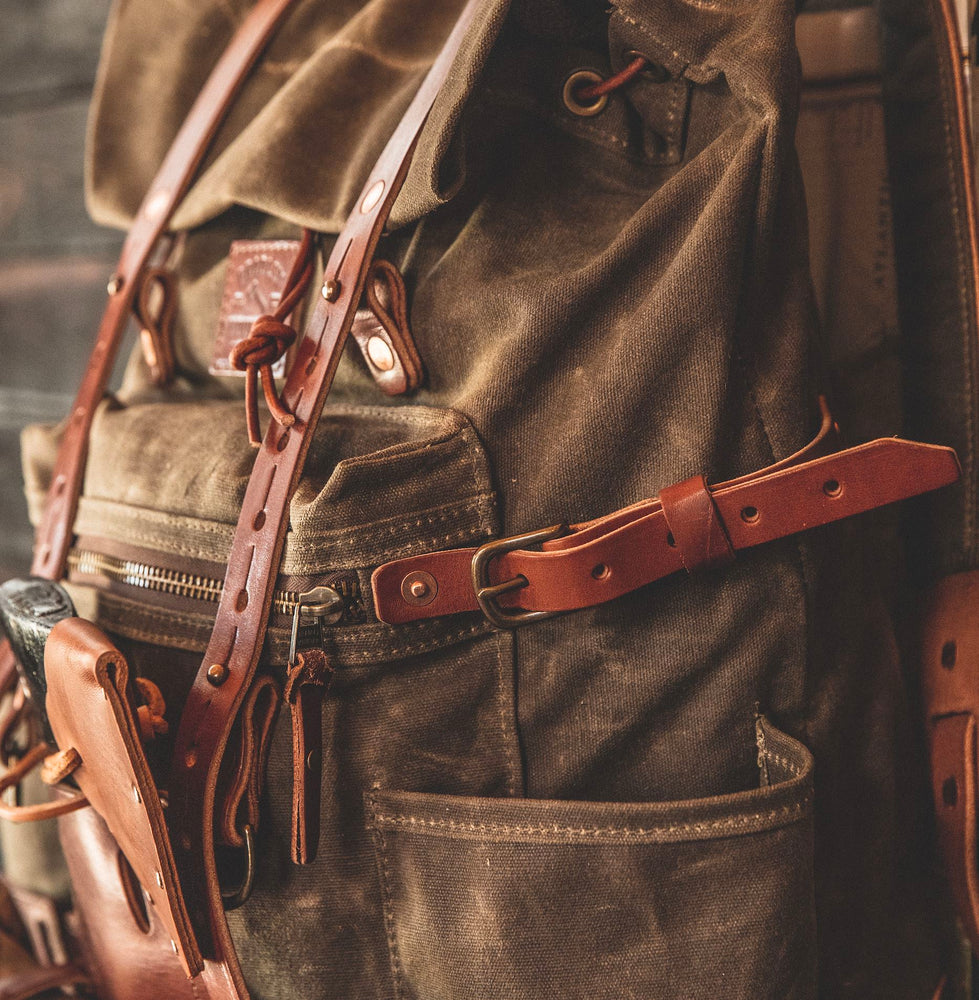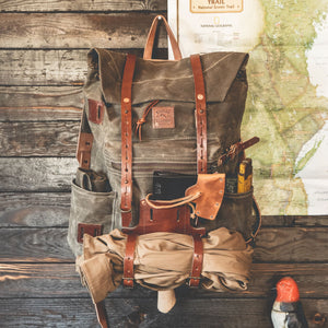 We made this exceptionally utilitarian Wilder Backpack with some really nice new features. There is a draw sting cord underneath the hood to allow for a more secure load, there are lash tabs added on the side and bottom of the bag for additional modular functionality (paired with the included utility straps), there are 2 water bottle pockets, and it comes with a beautiful hatchet slot that doubles as a giant lash tab for securing blankets and jackets to the front panel of the bag.